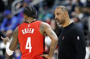 體育資訊4月24日訊 西部季后賽首輪G2,火箭109-94擊敗勇士,將大比分扳成1-1平。賽后,火箭主教練烏度卡接受了采訪,談到了杰倫-格林。