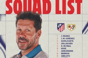 體育資訊4月24日訊 北京時(shí)間明天凌晨,馬競(jìng)將在西甲第33輪比賽中主場(chǎng)對(duì)陣巴列卡諾,馬競(jìng)公布了此役的球員名單,阿爾瓦雷斯、格列茲曼、加拉格爾在列。