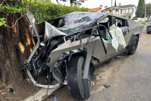 媒體曬出了車禍現(xiàn)場(chǎng)的照片及視頻,小阿里納斯駕駛的賽博皮卡前部已經(jīng)被撞得沒(méi)了形狀......