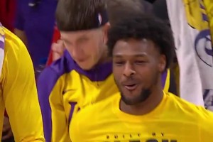 上一篇: 命中l(wèi)ogo三分后老詹使出經(jīng)典慶祝動作,八村上前為其戴上王冠
